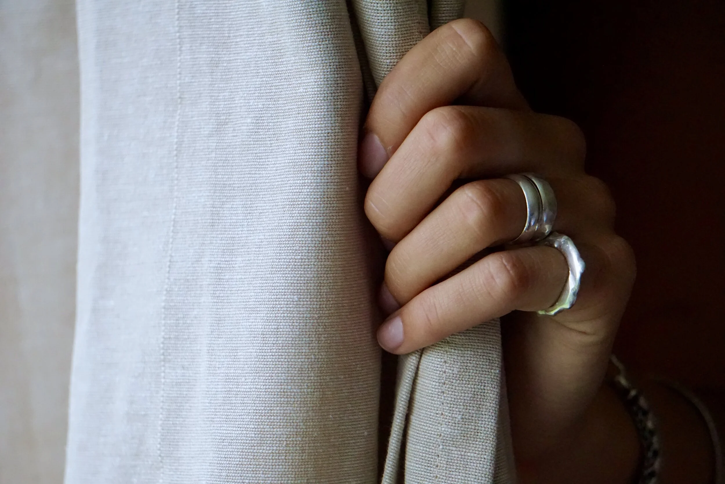 To create a molten piece, I heat the scrap silver until melting point and then form the shapes. This means no two pieces will ever be the same. I love the beauty of the irregularities and hope you do too.