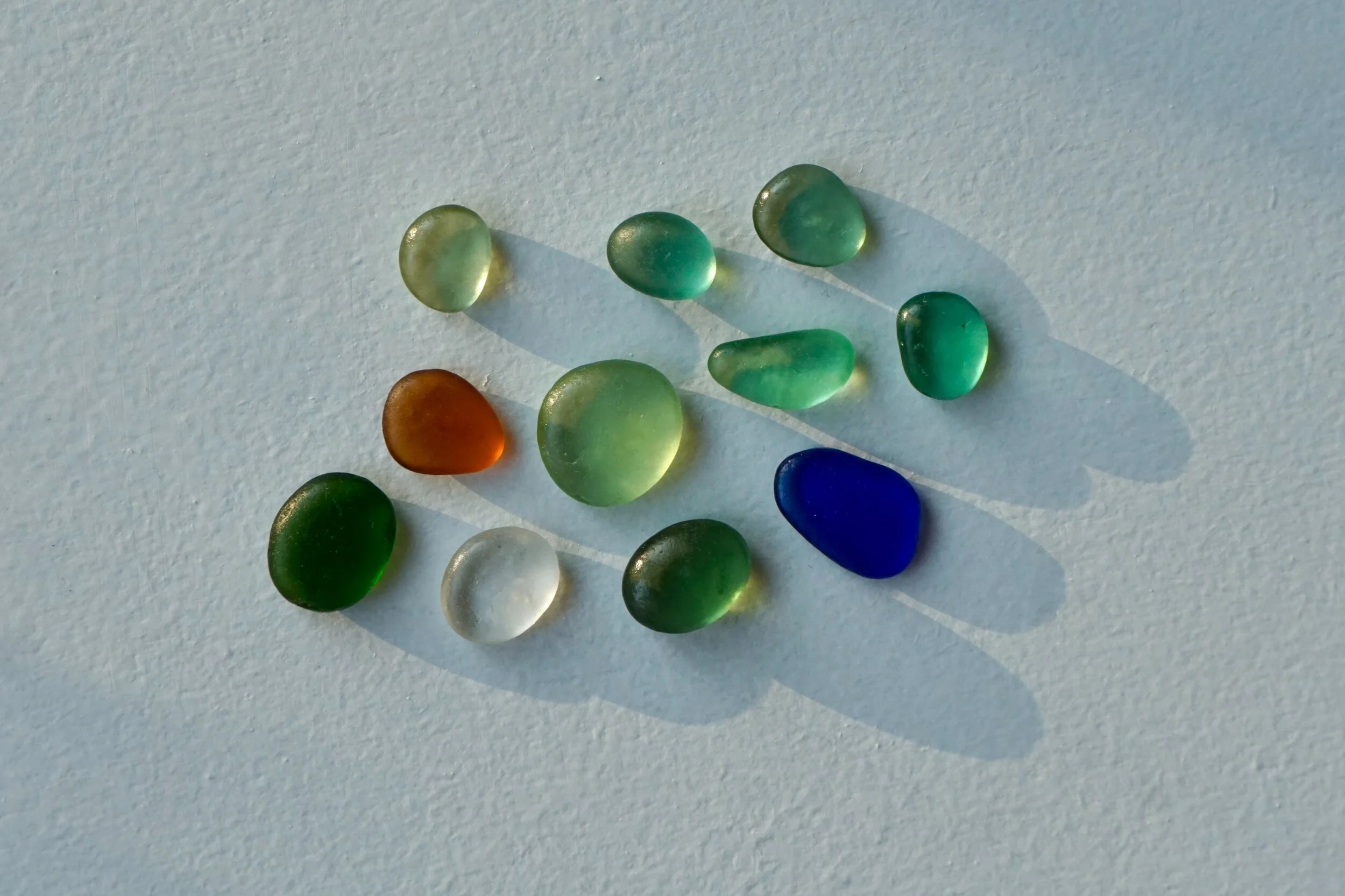 Sea glass is formed by the sea tumbling and smoothing broken pieces of glass, from old bottles and shipwrecks, over many many years.